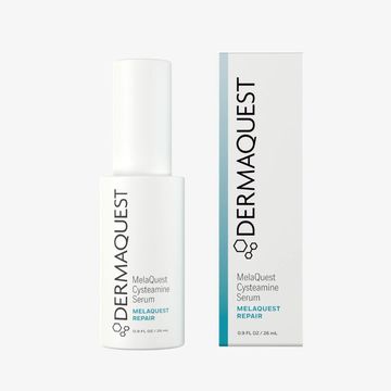 DermaQuest MelaQuest Cream with Cysteamine is a powerful, dual-action brightening moisturizer designed to fade dark spots, even out skin tone, and deeply hydrate. This non-hydroquinone formula features Cysteamine HCl, Kojic Acid, and Vitamin C to correct hyperpigmentation, prevent future discoloration, and improve skin texture. Bakuchiol and Peptides support cell turnover and collagen production, while Hyaluronic Acid and Safflower Seed Oil provide lasting hydration and barrier support.